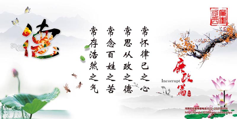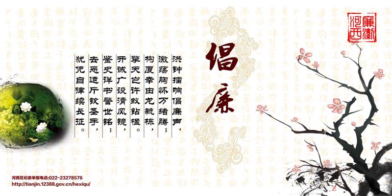 为深入推动全面从严治党向纵深发展,提高党员干部拒腐防变能力,增强全社会廉洁意识,形成廉荣贪耻的思想道德基础和浓厚的文化氛围。今年以来,河西区深入推进廉洁文化建设,把廉洁文化元素融入工作生活之中,在机关内部开设党风廉政建设教育园地,在公园广场、街道社区、楼间里巷设置廉洁公益广告,以喜闻乐见、通俗易懂的表现形式颂扬廉洁、鞭挞腐败,形成浓厚廉洁文化氛围。